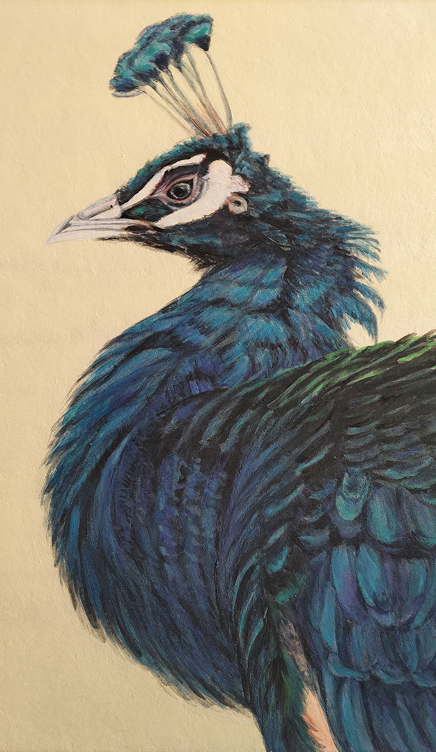春になり尾羽が生え揃い自信を回復したような孔雀の姿を描きました