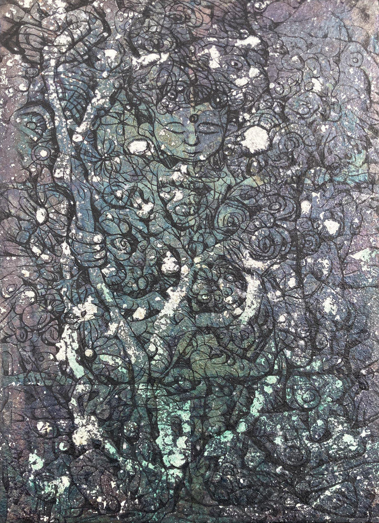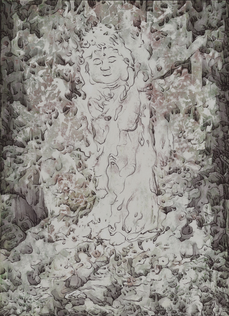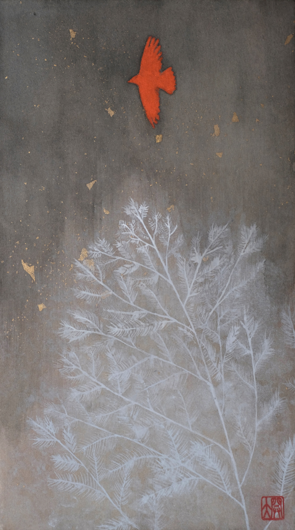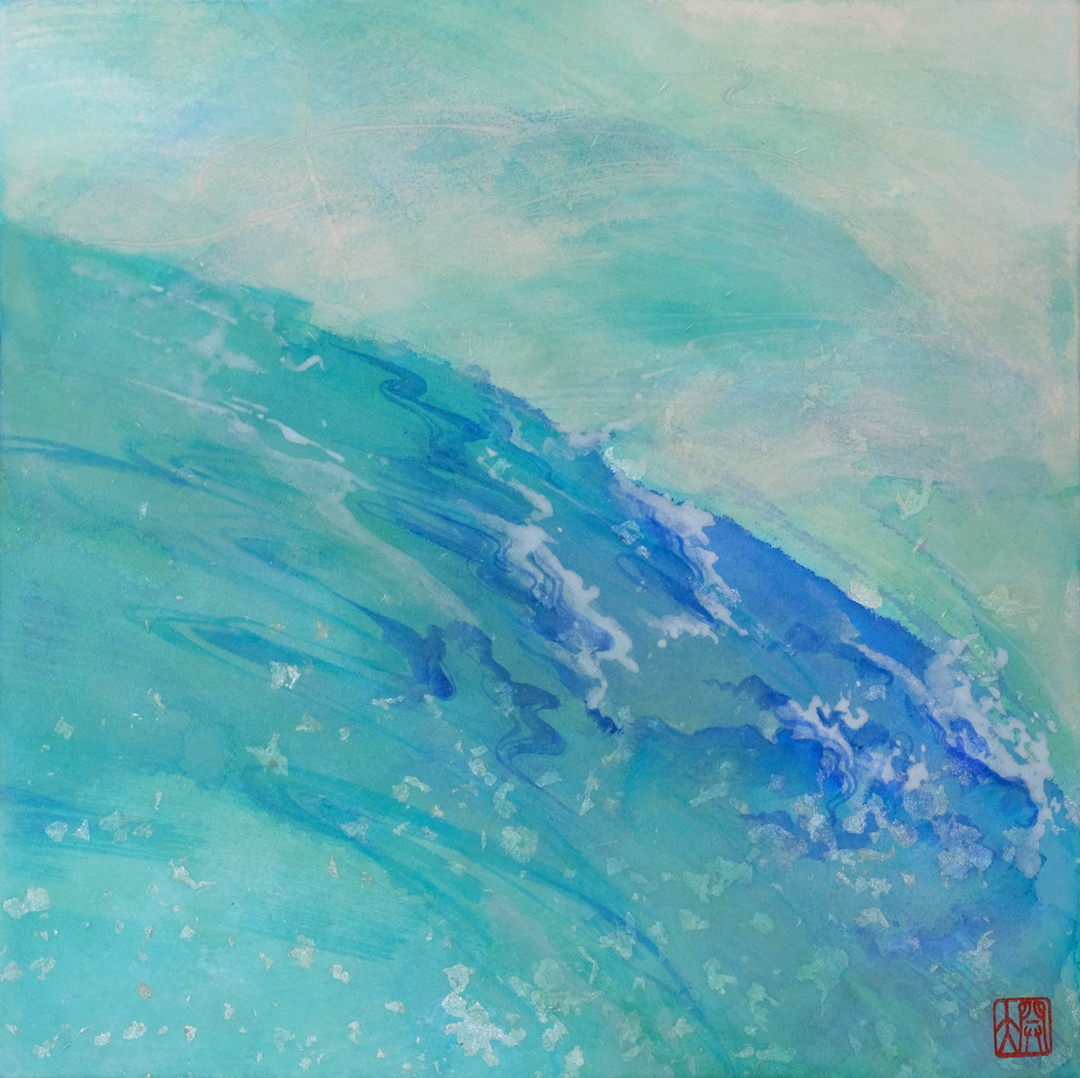 日本画材の重なりによって静謐さと力強さが同時に立ち現れる表現を試みました。 -