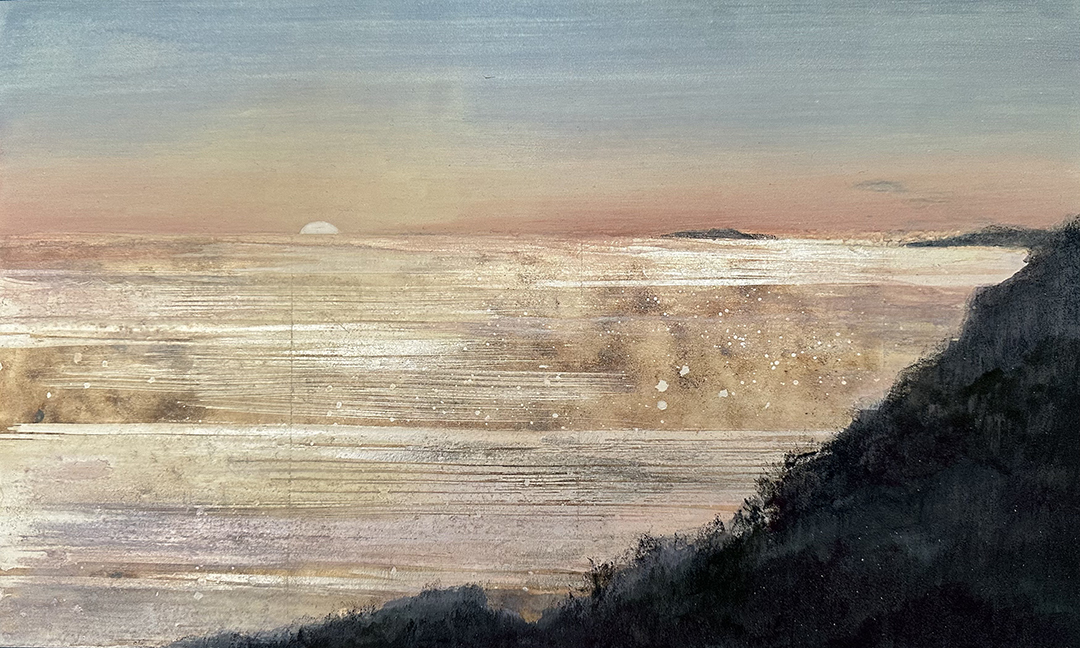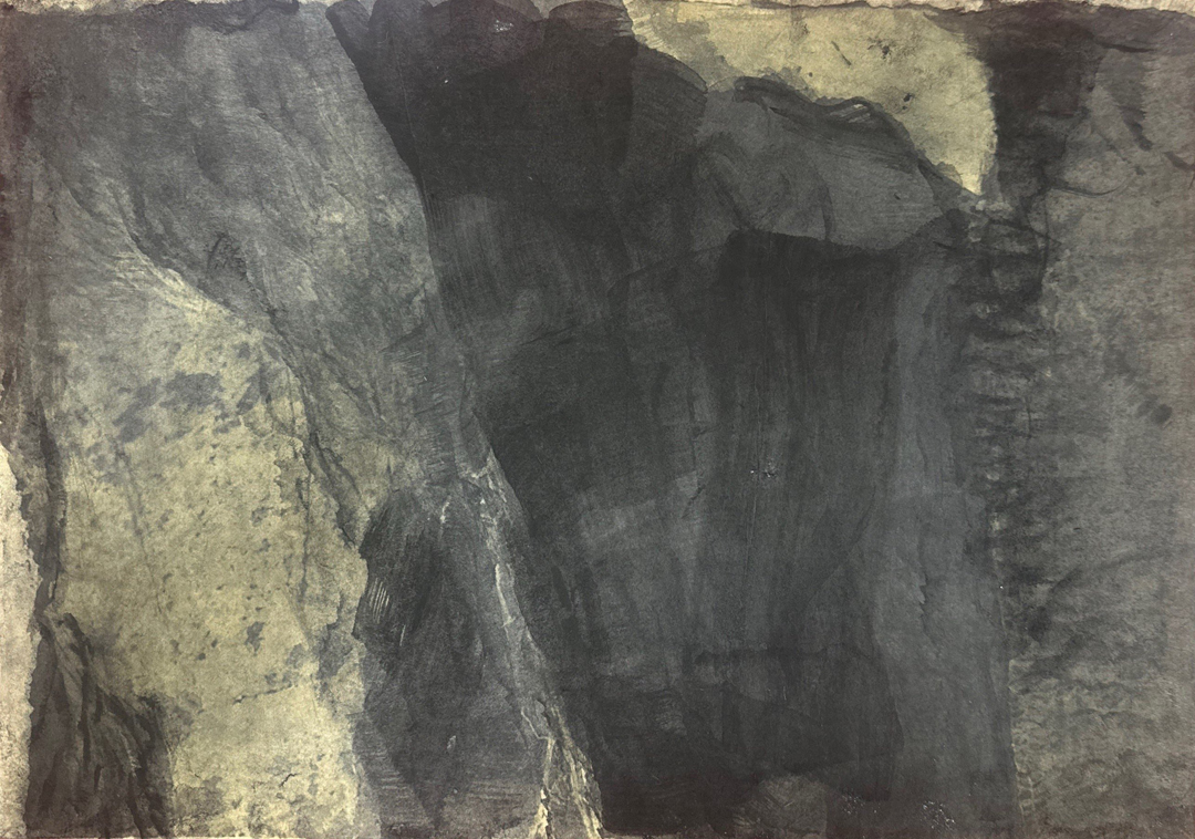 山道を進む際に経験する呼吸のリズム、視界に現れては消えていく景色──そうした瞬間的な感覚の連なりを、水墨による濃淡と筆致の変化として画面に定着させている。