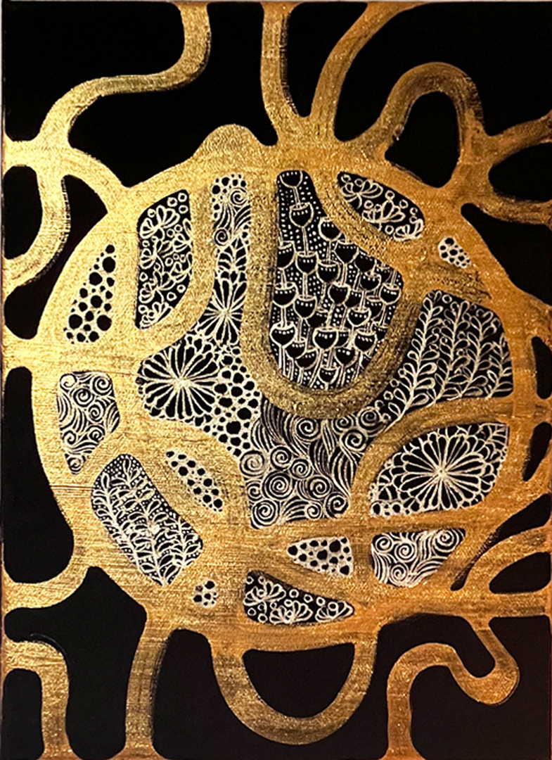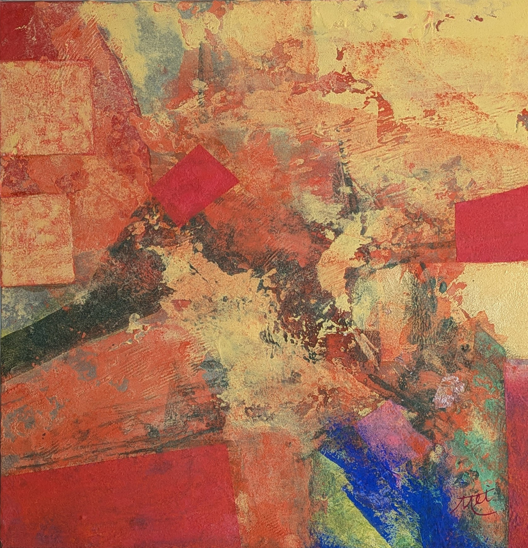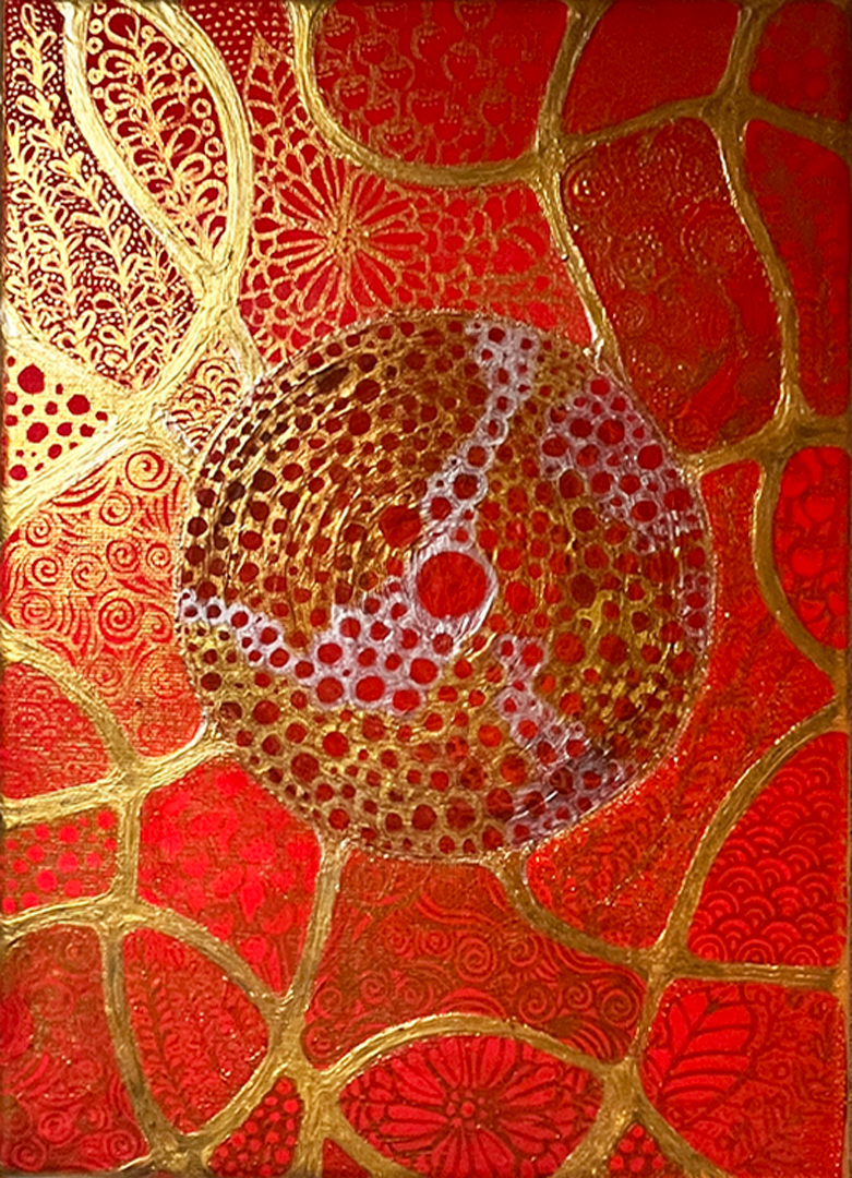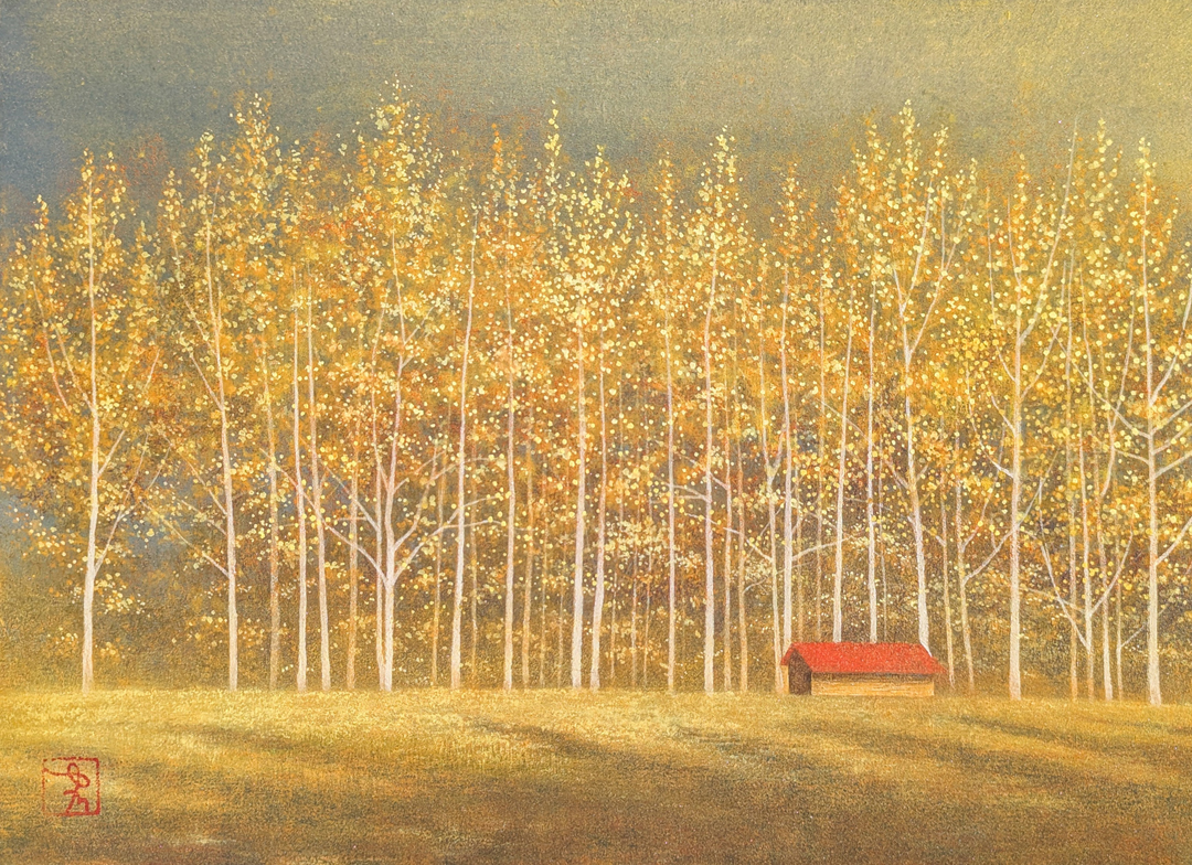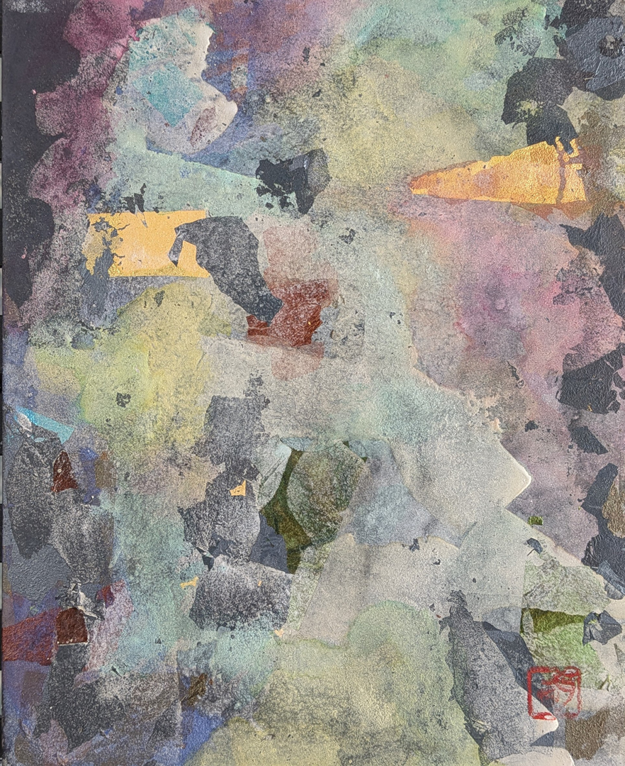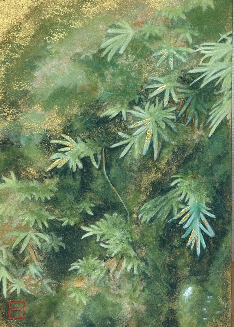 重なり合う色層の中に、微かな芽吹きの気配を散りばめた。