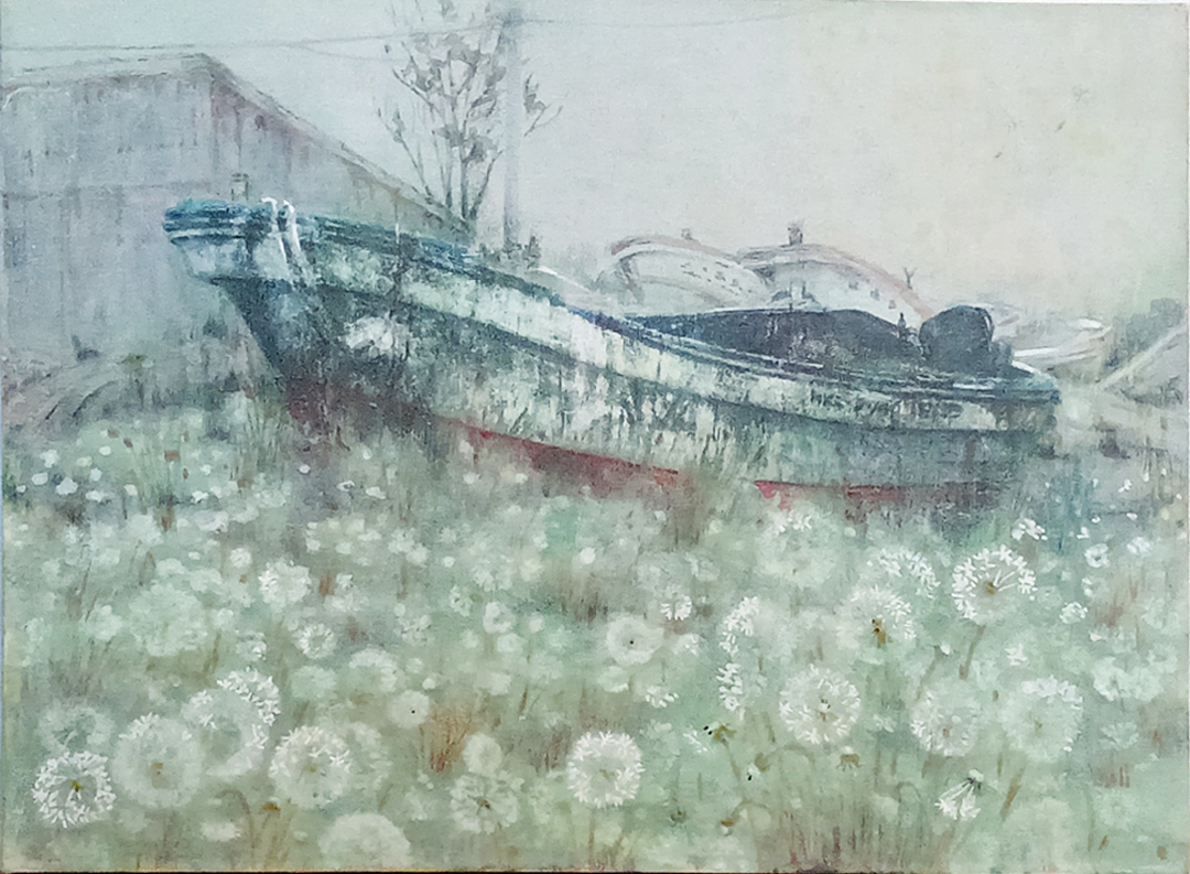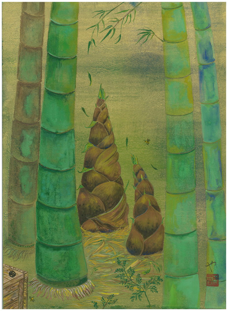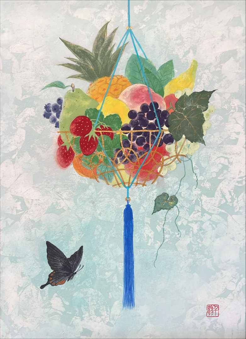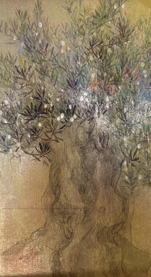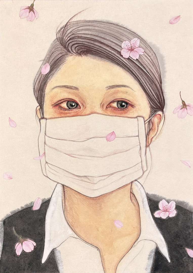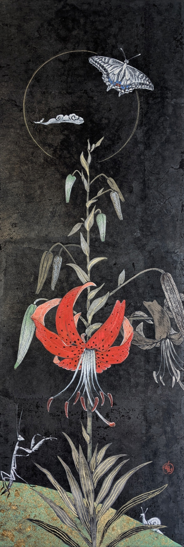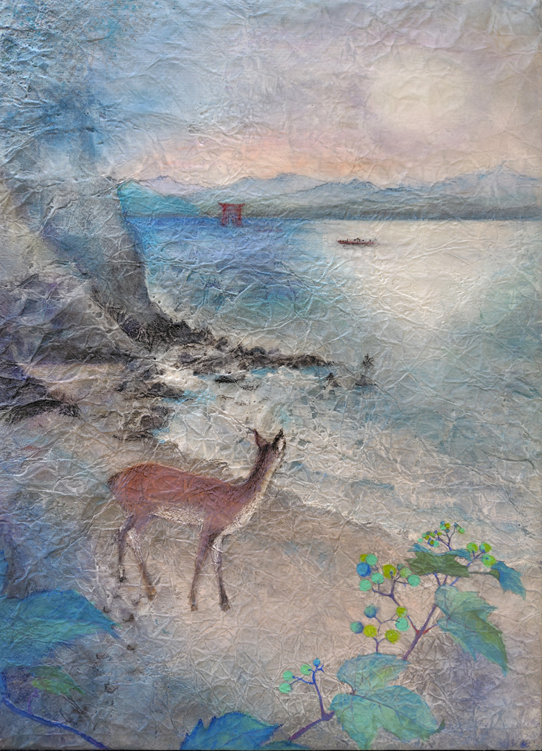 本作を出展した展示テーマが「道」であったことも踏まえ、描いた作品だけでなく、自分が色褪せぬ作家として歩み続けていく気持ちも込めた作品です。 -