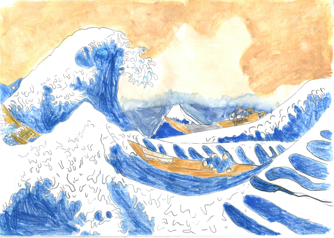 テーマ「夏」で制作した作品。台風や積乱雲、夕立など夏に見られる天候や空の変化をイメージしています。